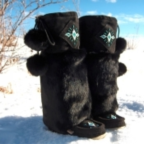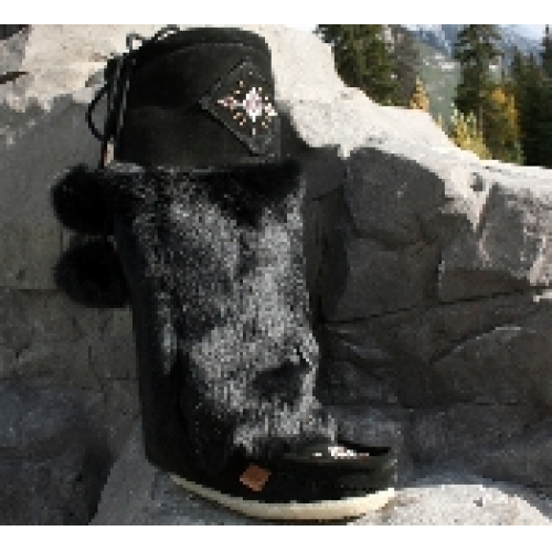 Mukluks With Rabbit Fur. These mukluks are hand made of genuine Canadian Suede and real rabbit fur. The insole and shaft are lined to keep your feet warm in the winter and cool in the summer. The plantation gum sole is not only comfortable but is designed to absorb shock with each step you take. All the products used in making this mukluk are Made right here in Canada. Each Mukluk is made of highest quality and craftsmanship by Laurentian Chief Since 1945 .